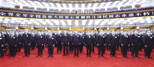 上午10时55分,追悼大会在雄壮的《国际歌》声中结束。随后,习近平等向江泽民同志的亲属表示深切慰问。