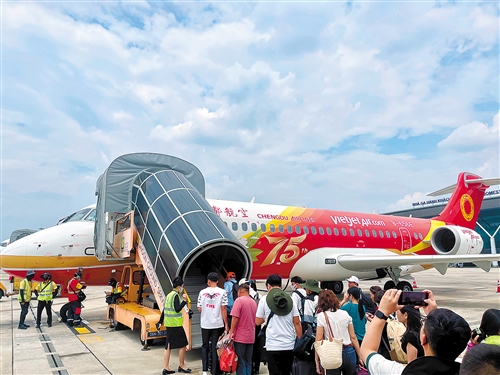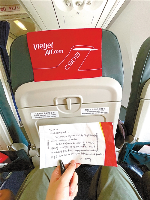 非常高兴搭乘越捷航空C909运营的航班,献上最好的祝愿。在这个特别的日子里,祝你们在外工作顺利、一切平安,感谢你们的付出,为国产飞机的出海奠定基础。祝大家“五一”国际劳动节快乐,祝中越友谊长存。