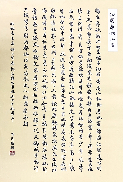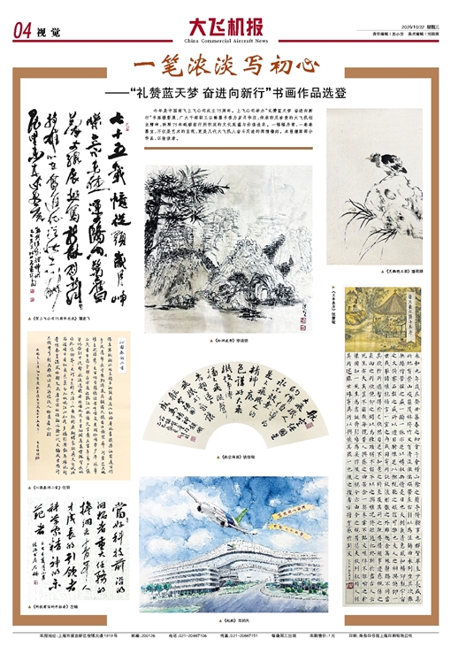 今年是中国商飞上飞公司成立75周年。上飞公司举办“礼赞蓝天梦 奋进向新行”书画摄影展,广大干部职工以翰墨书香为岁月作注,传承弥足珍贵的大飞机创业精神,映照75年砥砺前行所积淀的文化底蕴与价值追求。一幅幅丹青,一卷卷墨宝,不仅是艺术的呈现,更是几代大飞机人奋斗足迹的深情镌刻。本报撷取部分作品,以飨读者。