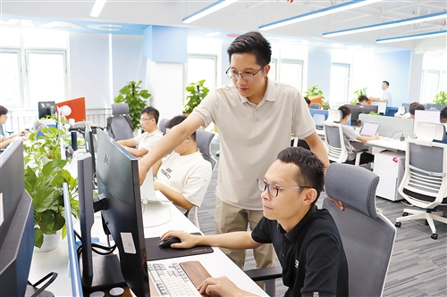 在商飞软件办公区一角,一群年轻的工程师正围站在一块写满复杂演算公式的数字白板前,进行着激烈的“头脑风暴”。这是他们攻克技术难题的常态。在这里,对技术最优解是大家的共同追求,每一个大胆的设想都会被认真倾听和探讨。