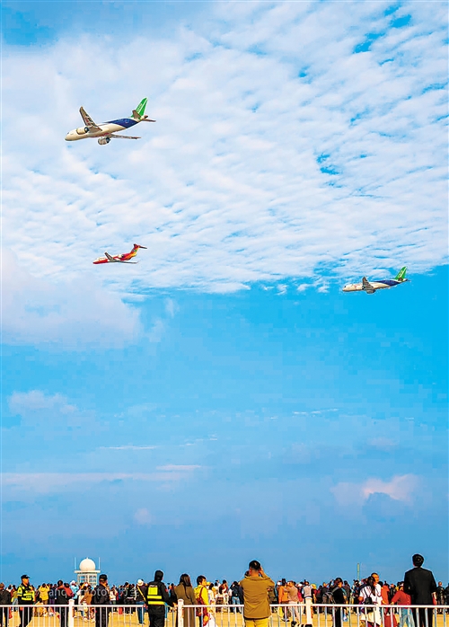 2025年10月31日,在2025南昌飞行大会暨航空产业博览会上,中国商飞公司三架飞机组成编队为现场观众带来一场震撼。