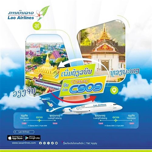 据老挝航空官网消息,老挝航空将于1月17日起使用C909飞机执飞万象—琅勃拉邦航线。去程QV105,万象—琅勃拉邦,11:30-12:05;回程QV106,琅勃拉邦—万象,12:45-13:20。