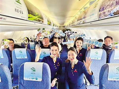“欢迎登机,飞向森林里的家。”为庆祝“伊春号”主题飞机启航,成都航空在首航航班上开展了丰富的主题客舱活动。航班抵达后,乘客们纷纷驻足,与这部“飞行中的艺术品”合影留念。“不仅外观惊艳,客舱内也充满了森林气息,仿佛提前步入了伊春的四季画卷。”一位旅客分享道。