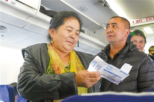 近日,古丽仙·阿塔伍搭乘华夏航空C909航班从乌鲁木齐飞往库尔勒。今年,她在儿子的建议下第一次乘坐飞机回家过年。对于自驾的4个半小时车程,如今40分钟的飞行一眨眼就到了,而仅360元的机票开销更让她乐开了花。今年春运,C909搭建的“边疆快线”航空网让天山南北的团圆路变得更加便捷。